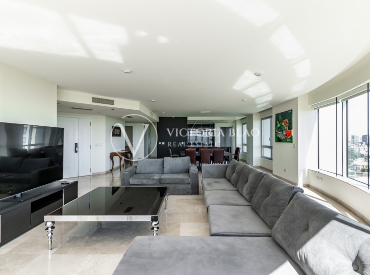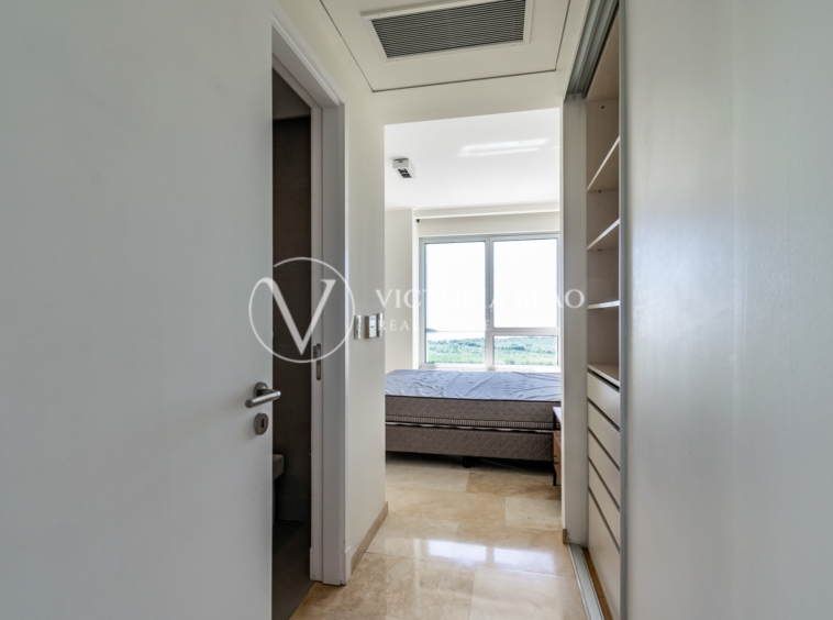 El inmueble cuenta con un toillete de recepcion , living comedor muy luminoso con vista al rio y ciudad . Dos dormitorios en suite . Ademas un tercer dormitorio / escritorio en suite . Suite principal con vista al rio y walk – in closet . Cocina amplia y moderna , lavadero independiente